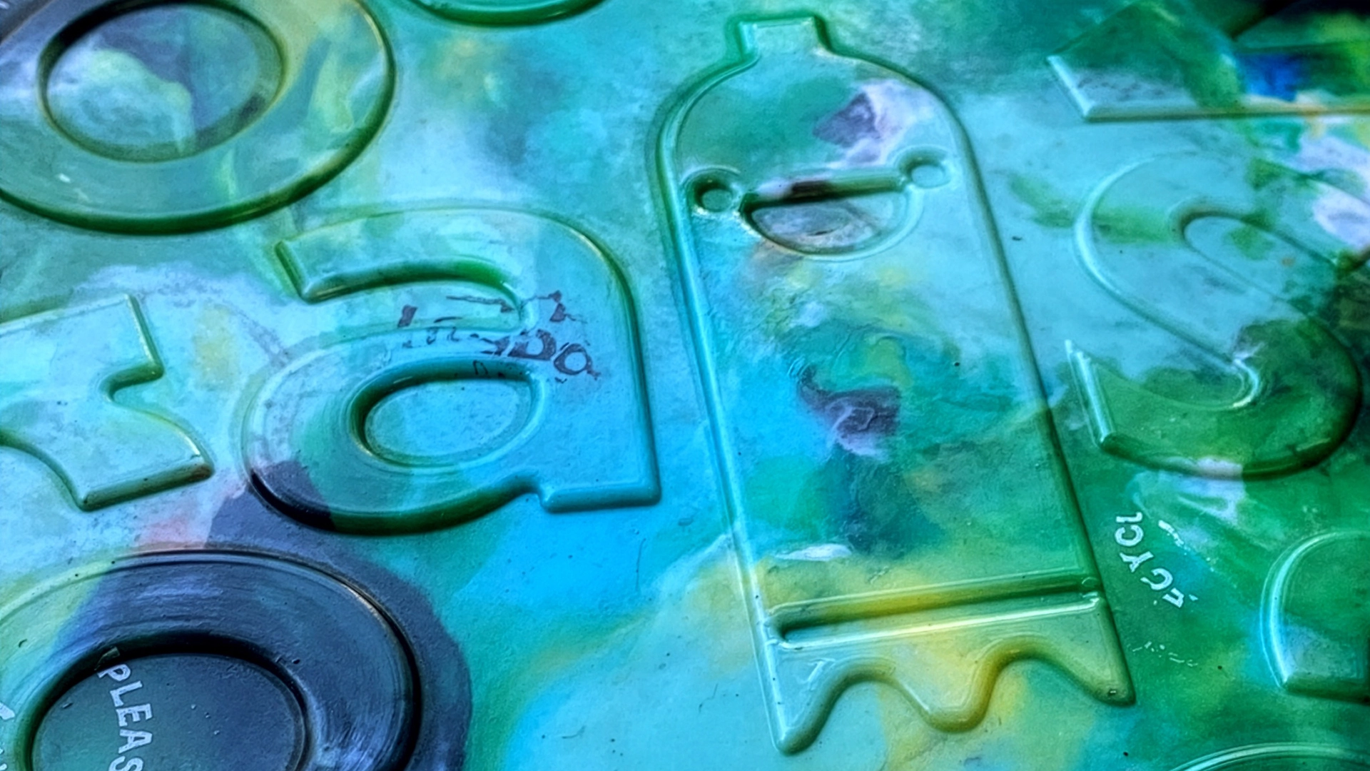 Je ziet nog subtiel de textuur en afdrukken van de doppen. Geen filters, geen trucjes — dit is hoe echt circulair design eruitziet: rauw, puur en uniek.