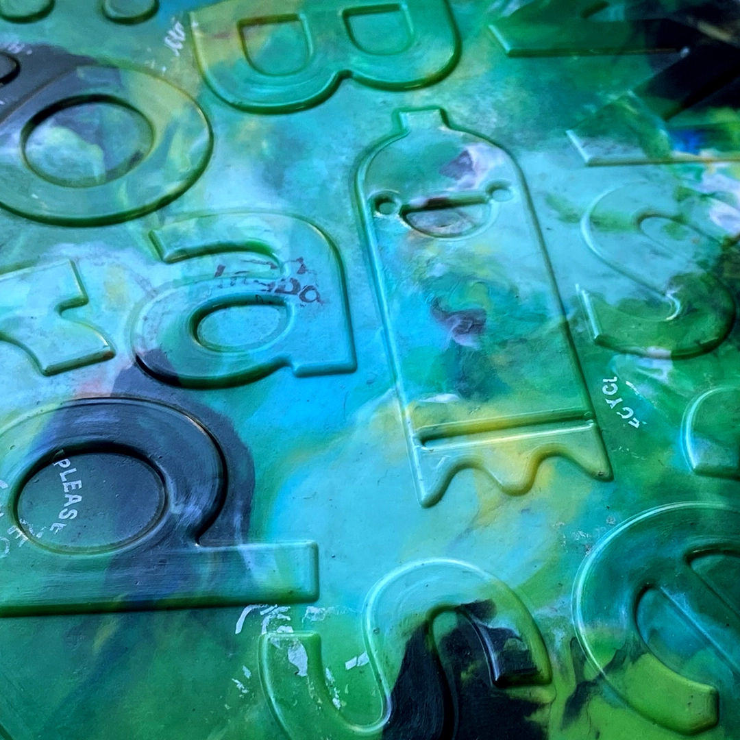 Het GreenCaps WasteBoard heeft een camouflage-achtig groen patroon — ontstaan uit honderden doppen die nooit op dezelfde manier smelten. Daarom is elk board one-of-a-kind. Geperst, gevormd en hand-finished in Nederland verkocht bij Moma NY en the Design Museum Londen.