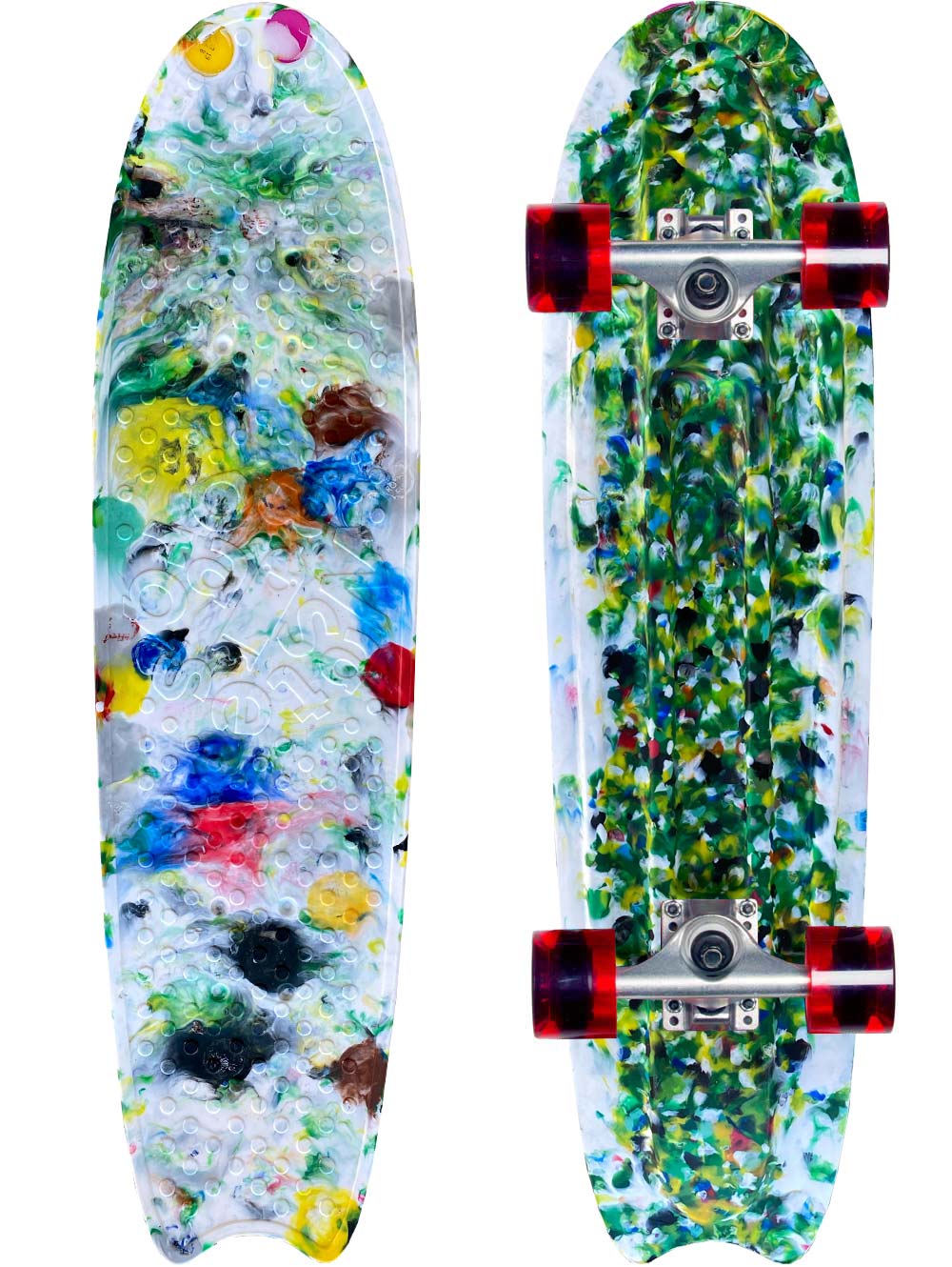 Samen met de Amsterdamse skatescene werkten we ruim twee jaar aan het perfecte board. Om onze kenmerkende doppenpatronen te behouden, bedachten we een compleet nieuwe productiemethode — sterk, flexibel en uniek in z’n soort. Zo sterk, dat je er zelfs een levenslange garantie op krijgt.