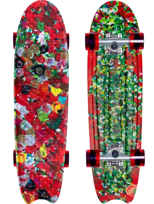 Handgemaakt Dutch Design van 850 gerecyclede plastic doppen. Geen twee boards zijn hetzelfde.